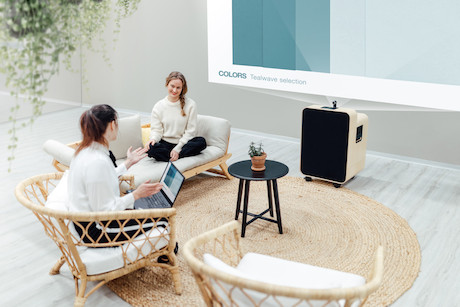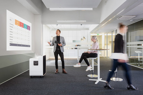 Artome M10 ist ein intelligentes Möbelstück mit eingebettetem Soundsystem und Videokonferenzfunktion. Es ermöglicht müheloses Präsentieren und Hybrid-Meetings. Es lässt sich leicht von einem Ort zum anderen bewegen und es wird lediglich eine helle Wand oder eine Leinwand als Reflexionsfläche benötigt. Die Verbindung mit verschiedenen Geräten ist flexibel. Es sind keine zusätzlichen Installationen von Treibern oder Software erforderlich, fügen Sie einfach Strom hinzu.