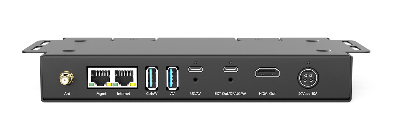 Für mittelgroße Konferenzräume oder Seminarräume mit zwei Displays können Sie ein zweites Display über den EXT Out/DP/UC/AV USB-C-Port anschließen. Bei Displays, die nur über HDMI verfügen, benötigen Sie lediglich einen USB-C-zu-HDMI-Adapter, um das Videosignal zu konvertieren.