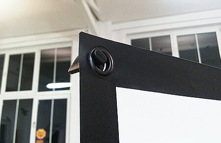 Auch im zusammengebauten Zustand ist die Leinwand aufgrund ihres geringen Gewichtes leicht zu positionieren und auszurichten.