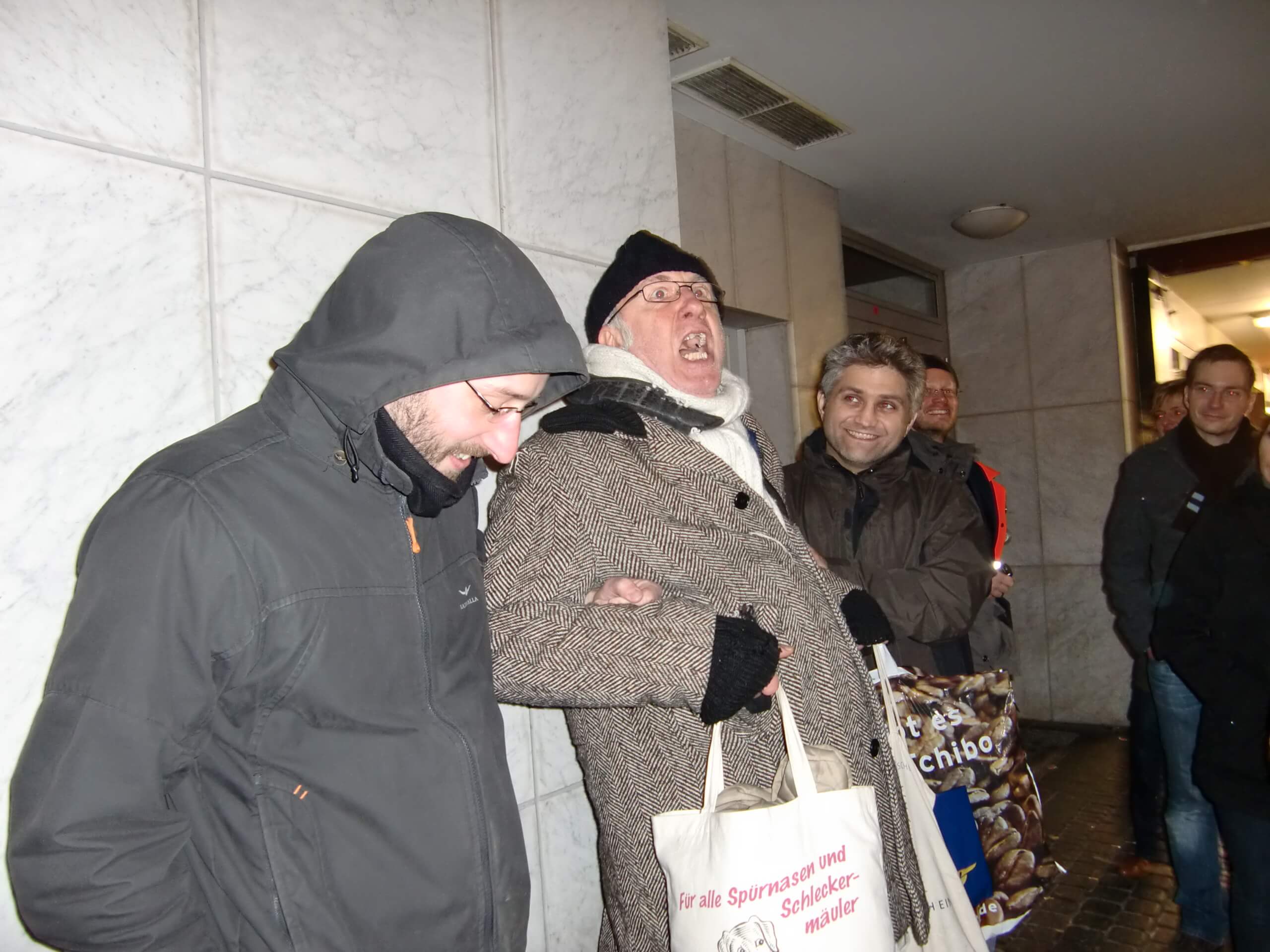 Projektor AG war am 9. Dezember nachmittags nicht erreichbar, wie auf Beamer-Discount.de angekündigt – und das aus gutem Grunde. Denn in der Domstadt war ein schrecklicher Mord passiert. Nur durch die krimimalistischen Fähigkeiten der Mitarbeiter unseres Unternehmens konnte der richtige Mörder gefasst werden. In vier Kripo-Gruppen geteilt, trotz kalten Wetters und Zeugen, die sich nicht immer wahrheitsgemäß geäußert hatten, hat eine Gruppe den Täter festnehmen können – sehr zur Freude der Hinterbliebenen des Opfers und der vorbeilaufenden Passanten. Danach war ein festliches, wohlverdientes Weihnachtsessen genau das Richtige nach einem harten Ermittlungstag.
