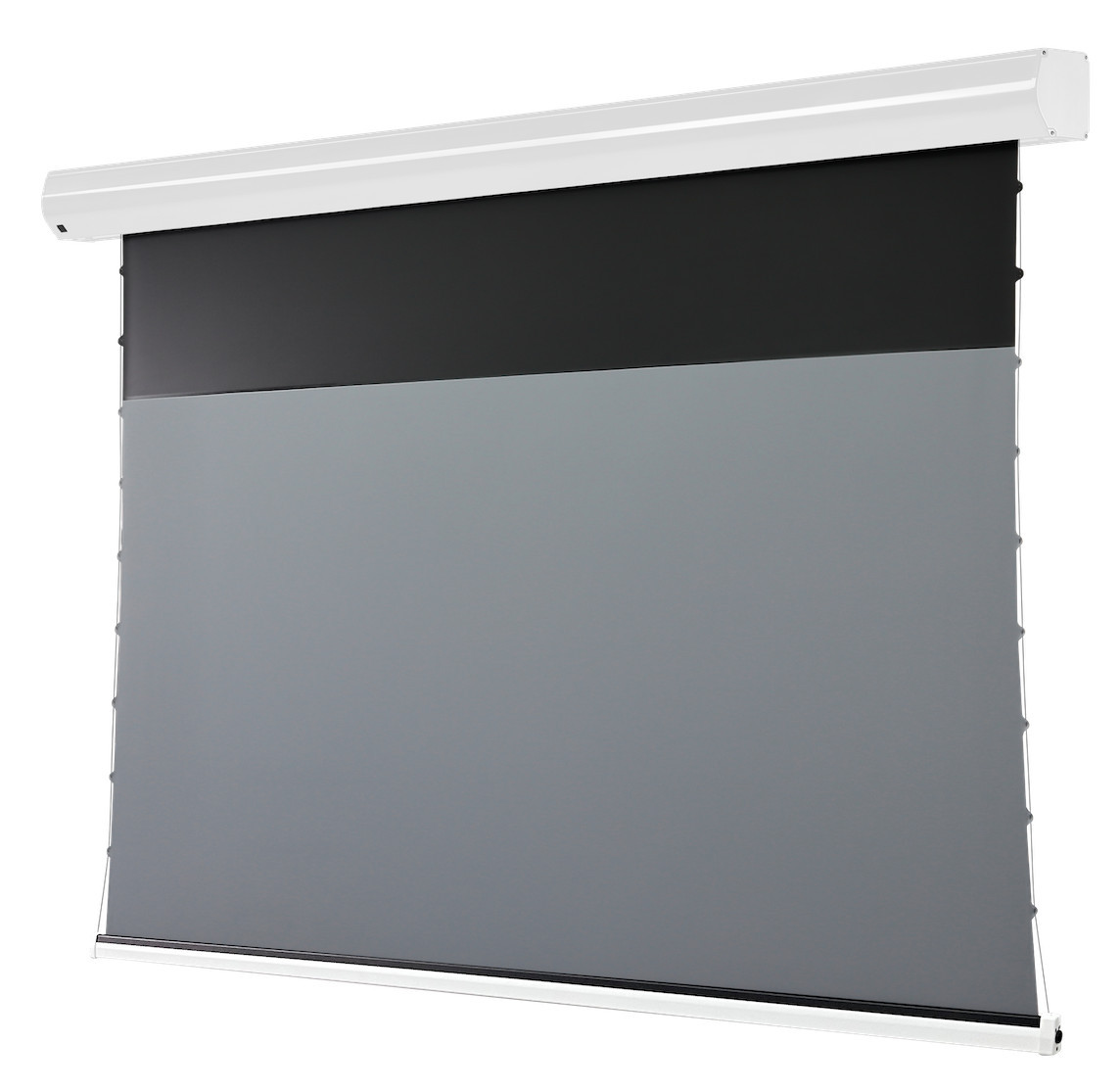 Ausgestattet mit unserem neuen "black grid CLR Tuch", vielen Steuerungsmöglichkeiten zur optimalen Integration und mit speziellem Seilspannsystem perfekt auf unser CLR Tuch angepasst, sorgt unsere neue Leinwand für beste Planlage, lebendige Bilder und satte Schwarzwerte, auch unter Restlicht und bei Tag im Raum.