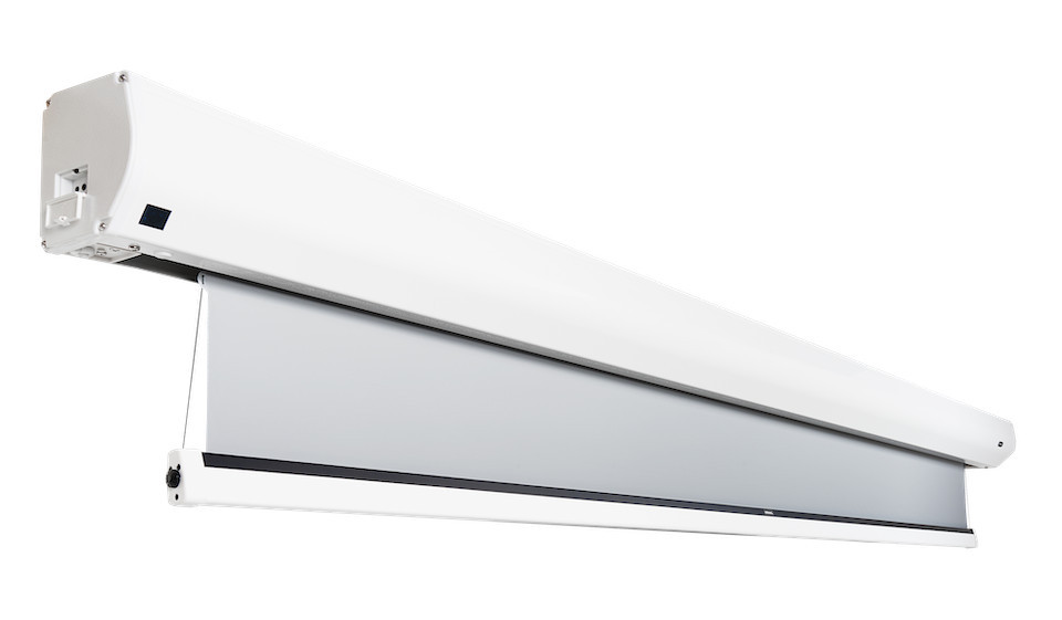Das wertige Gehäuse ist geradlinig geformt und fügt sich unauffällig in moderne Wohnraum Umgebungen ein. Durch die klare Linien-Form lässt sich die Leinwand sehr gut in Ihre Räumlichkeit integrieren und stört das Wohnambiente vor allem im eingefahrenen Zustand nicht.