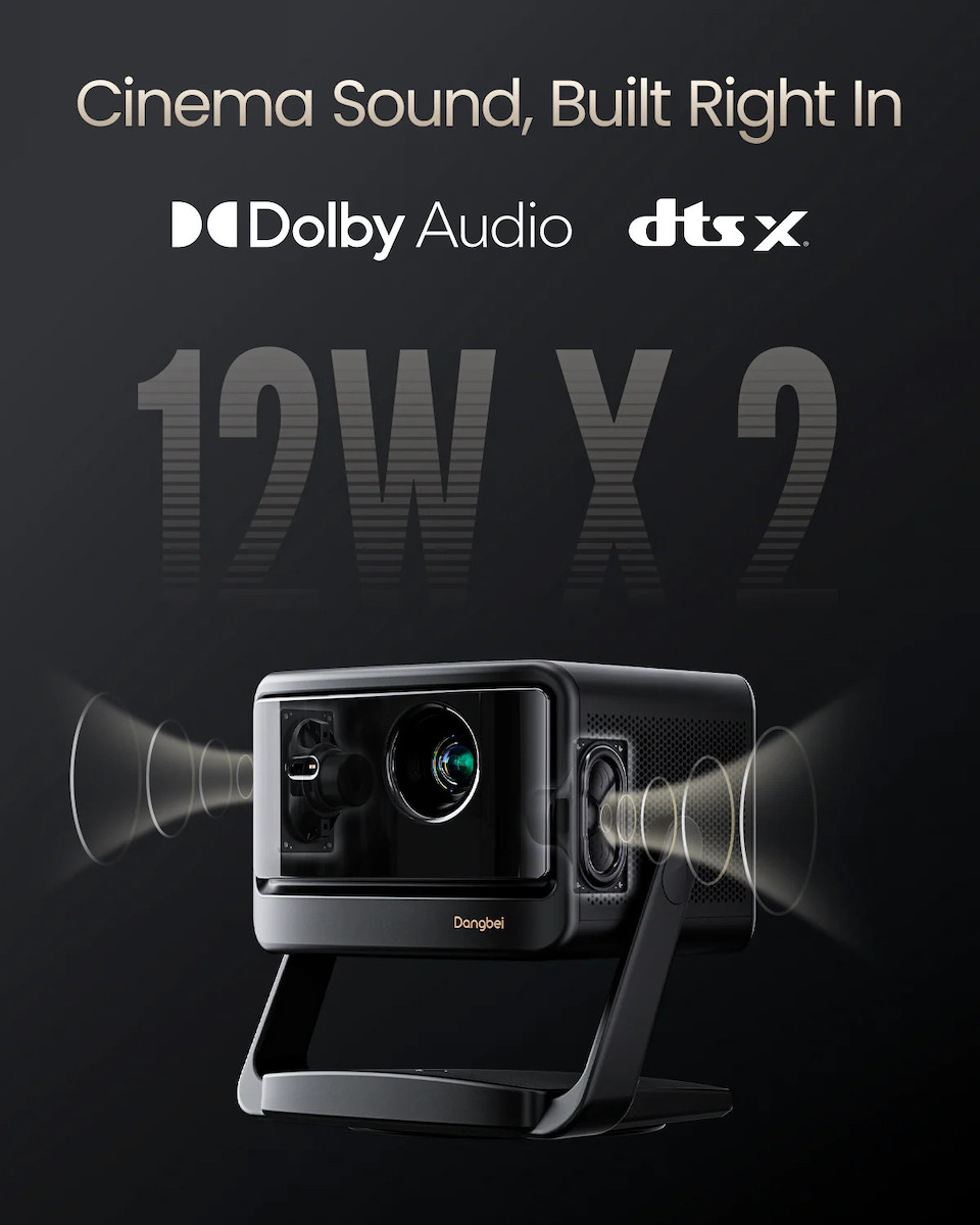 Der DBOX02 Pro überzeugt nicht nur technisch, sondern auch funktional. Der integrierte Gimbal-Standfuß aus stabilem Carbonstahl ermöglicht eine kinderleichte und präzise Ausrichtung des Bildes. Mit HDMI 2.1 (eARC), LAN, S/PDIF, zwei USB-Ports sowie modernstem Wi-Fi 6 und Bluetooth 5.2 bietet er alle Anschlüsse, die ein modernes Setup benötigt. Trotz dieser Leistung bleibt der Beamer mit unter 24 dB flüsterleise und stört so niemals das Film- oder Spielerlebnis.