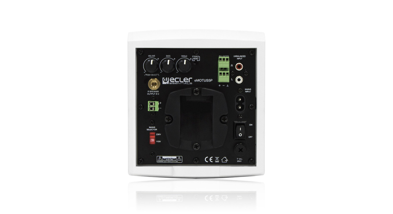 Die MASTER-Einheit des Lautsprechersystems verfügt über praktische Pegel- sowie Klangregler für Bass und Höhen, eine Stereo-/Mono-Umschaltung sowie einen integrierten Verstärker mit 2 x 25 W RMS Leistung. Die Verbindung zum passiven Lautsprecher erfolgt unkompliziert über Euroblock-Anschlüsse. Dank Auto-Standby-Funktion wird Energie gespart, ohne dass das System täglich manuell ein- oder ausgeschaltet werden muss.