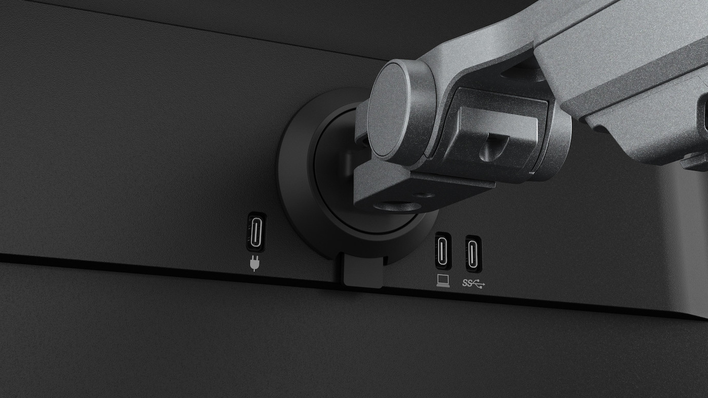 Der FLT folgt dem Prinzip "weniger ist mehr". Dank der Stromversorgung über USB-C entfällt das klobige externe Netzteil, das bei vielen Monitoren für Unordnung sorgt. Ein einziges Kabel zu Ihrem Laptop oder PC genügt. Der einzigartige Schwenkarm-Standfuß ist nicht nur elegant, sondern auch äußerst praktisch: Er bietet einen großen Einstellbereich und gibt fast die gesamte Schreibtischfläche unter dem Monitor frei.
