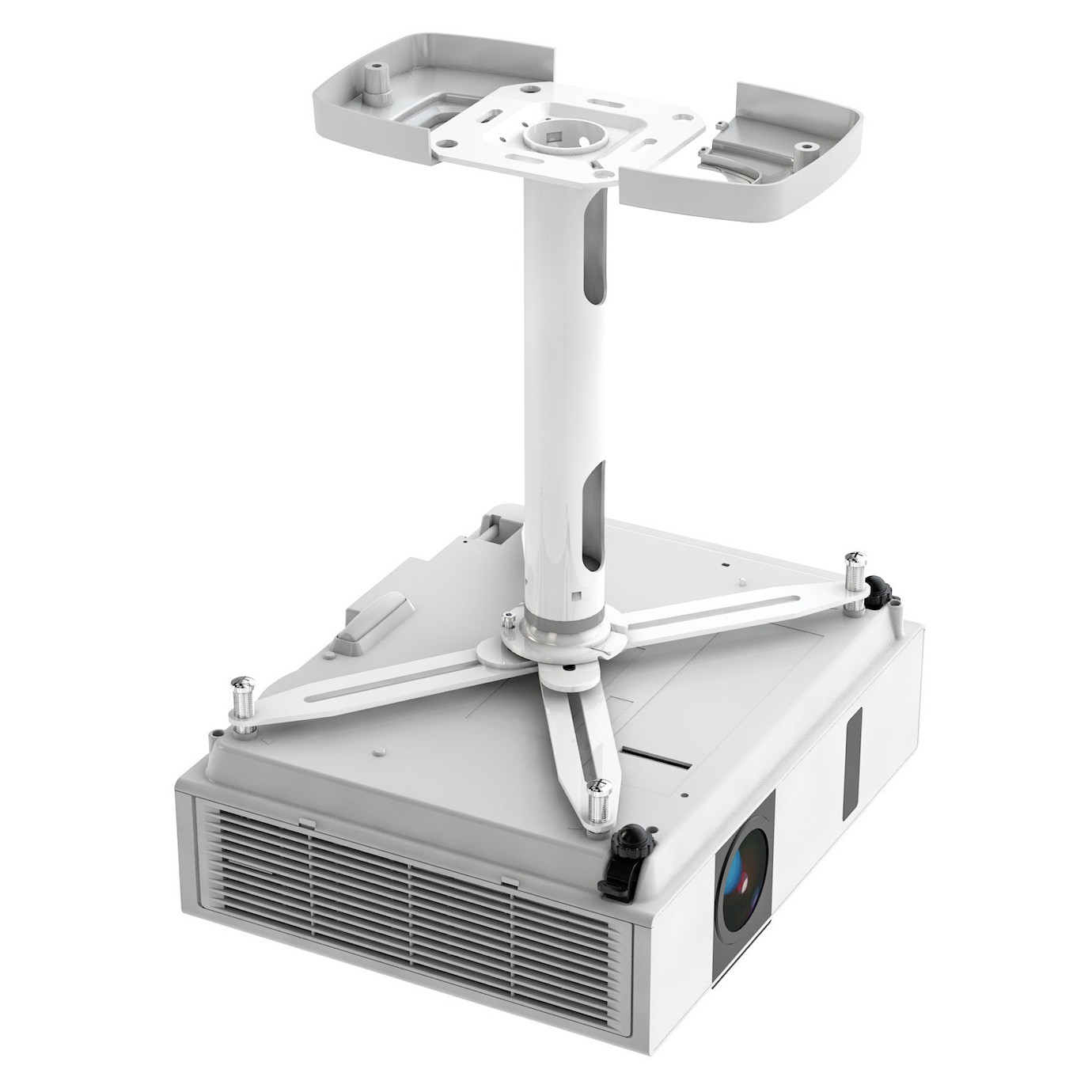 Moderne, formschöne Deckenhalterung für Projektoren, RAL 9003 weiß, Abstand Projektor/Decke 30 cm- Komplett vormontiert, schnelle und problemlose Installation