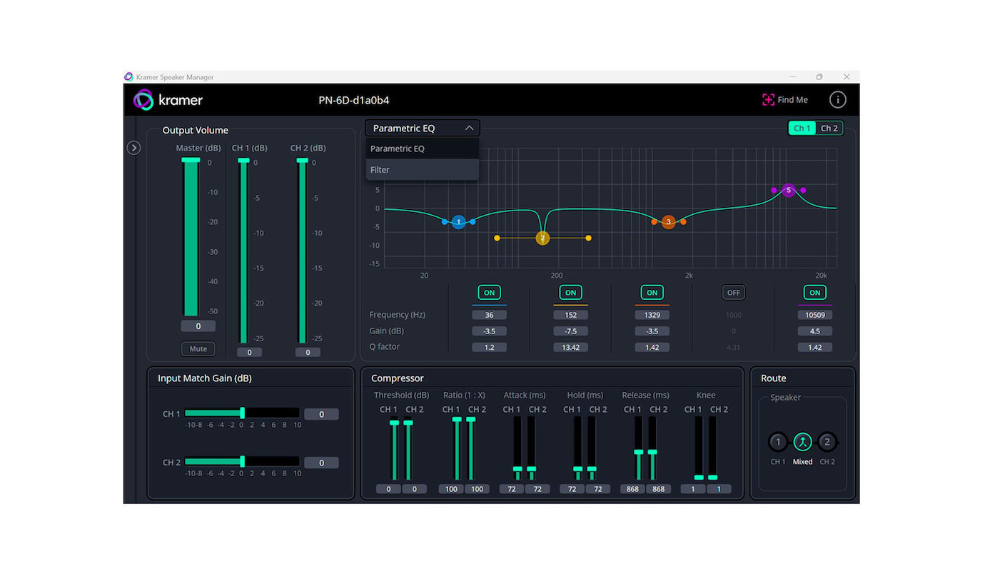 Profitieren Sie von einer technologischen Lösung, die Verstärker, Mischer und Signalprozessor in einem eleganten Wandgehäuse vereint. Der WM-6D nutzt ein hochwertiges 2-Wege-System mit einem 165 mm Tieftöner und einer ferrofluid-gekühlten 25 mm Seidenkalotte für eine detailgetreue Wiedergabe von Sprache und Musik. Über die intuitive Kramer Speaker Utility Software steuern Sie komplexe Funktionen wie die 2-Kanal-Mischung oder Eingangs-Kompression direkt über das Netzwerk. Besonders praktisch für Wartung und Inbetriebnahme: Die integrierte "Find Me"-Funktion lässt den Lautsprecher einen Ton abgeben, damit Sie ihn in großen Installationen sofort lokalisieren können.