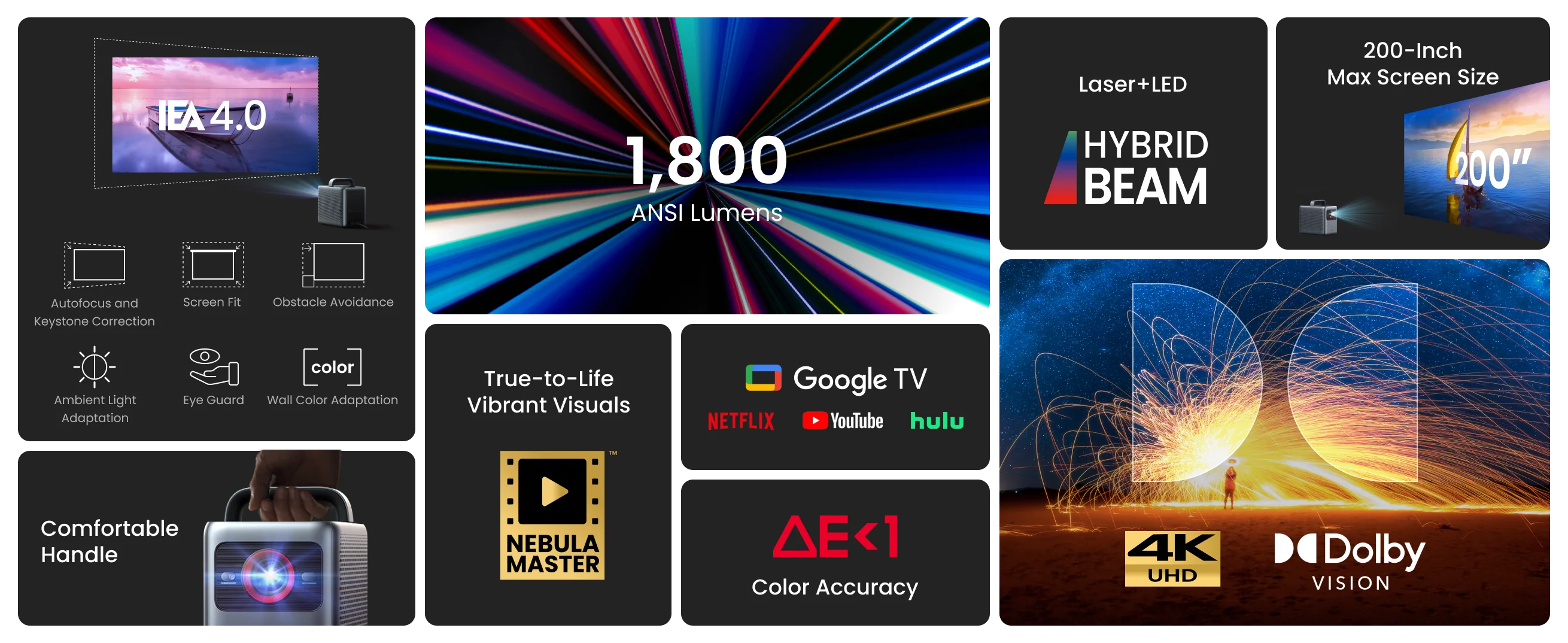 Der Nebula Cosmos 4K SE Beamer bietet eine hervorragende Kombination aus brillanter 4K-Bildqualität, innovativer HybridBeam™-Technologie und der intelligenten Google TV-Integration. Er ist ein flexibler Beamer, der Ihnen langfristig Freude bereiten wird. Dank der vielen Aufstellungsmöglichkeiten fügt er sich ideal in jedes Heimkino ein und erleichtert die Einrichtung.