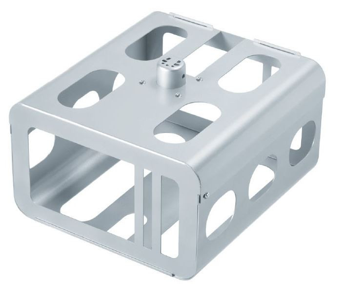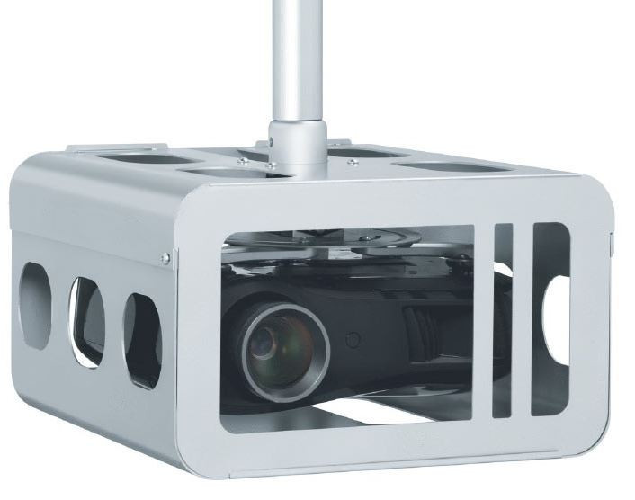 Die Vogels Diebstahlschutzgehäuse sind so konstruiert, dass der Projektor schnell und einfach zu warten ist. Große Öffnungen oben und unten am Gehäuse ermöglichten den problemlosen Zugang zum Projektor für Service- und Wartungsarbeiten. Große Belüftungsöffnungen sorgen für ausreichende Kühlung, um ein Überhitzen des Projektors zu verhindern. Nach dem Anbringen an der Decke kann der Projektor ausgerichtet werden. Nach der endgültigen Ausrichtung kann das Gehäuse mit speziellen diebstahlsicheren Schrauben geschlossen werden. Außerdem können ein Vorhängeschloss und/oder eine Schraube mit Mutter zur zusätzlichen Sicherheit angebracht werden.