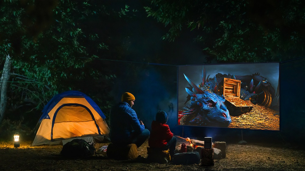 Mit einem 1,2:1-Projektionsverhältnis genießen Sie mehr Flexibilität bei der Einrichtung Ihres Halo+ GTV im Innenbereich, sowohl im Wohnzimmer als auch im Garten für Filmabende. Projizieren Sie Bildgrößen von 60 bis 120 Zoll und erleben Sie Ihr nächstes Outdoor-Abenteuer, ohne sich Gedanken über die Platzierung und Installation des Projektors machen zu müssen.